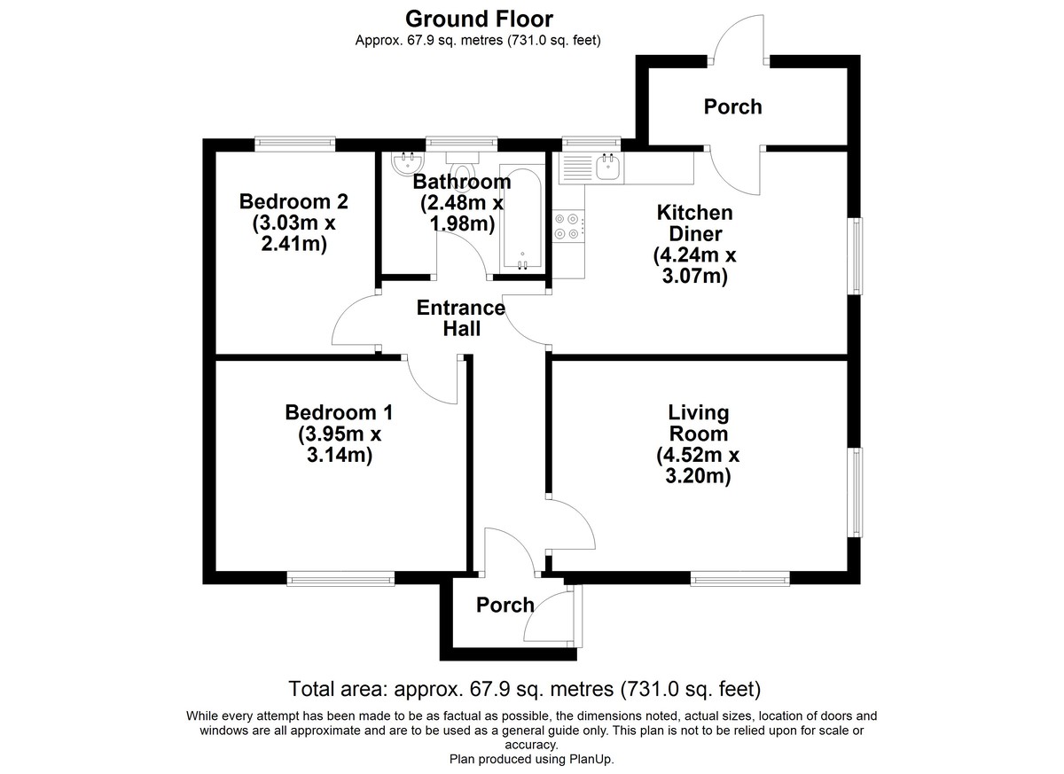 The accommodation comprises a kitchen-diner, living room, two double bedrooms, and a bathroom. Externally, the property features a garage and a large garden, offering plenty of space for outdoor enjoyment.